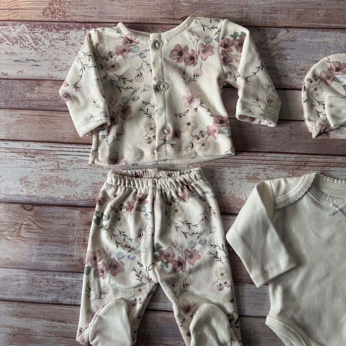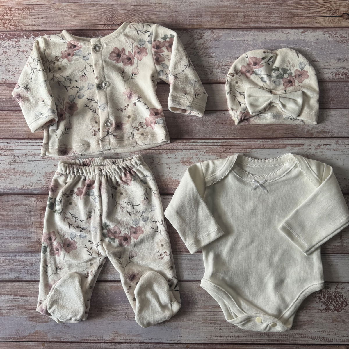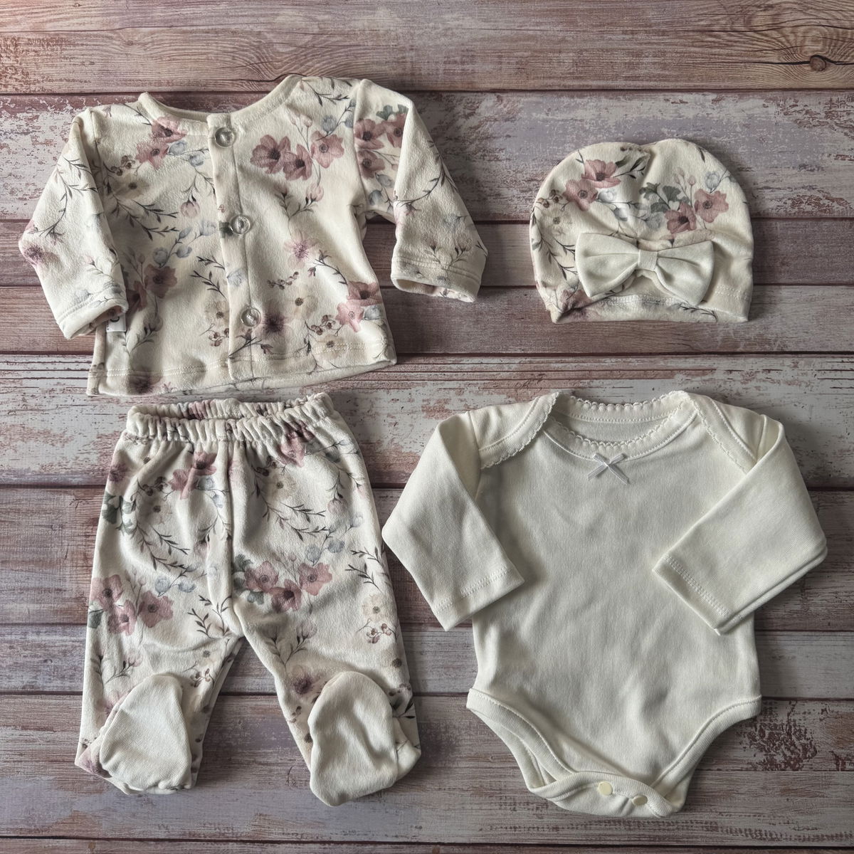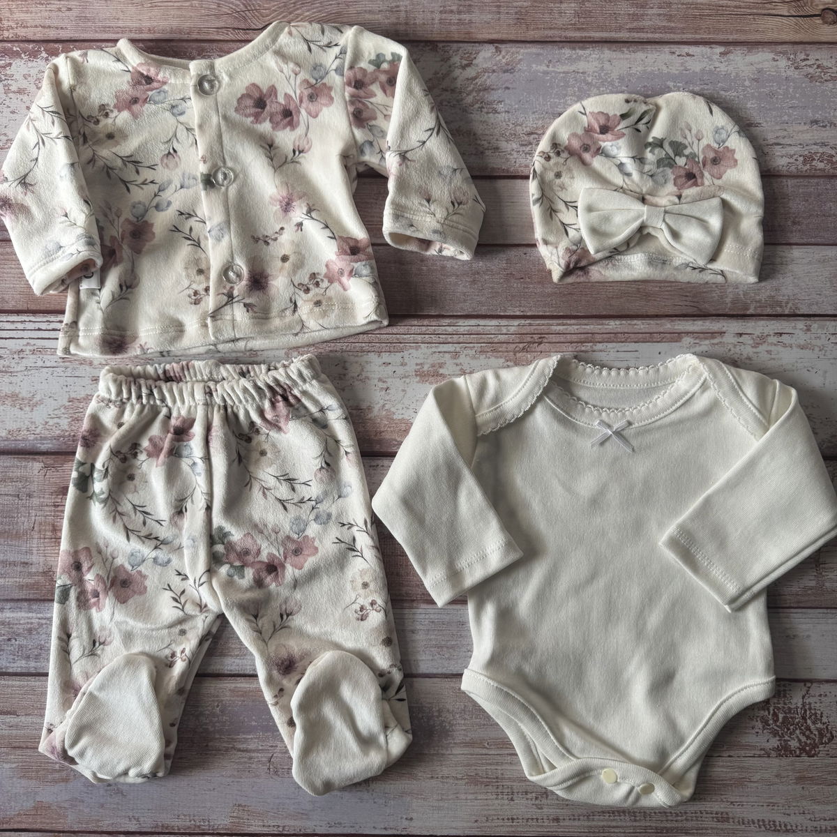 ajuar 4 piezas florcitas natural