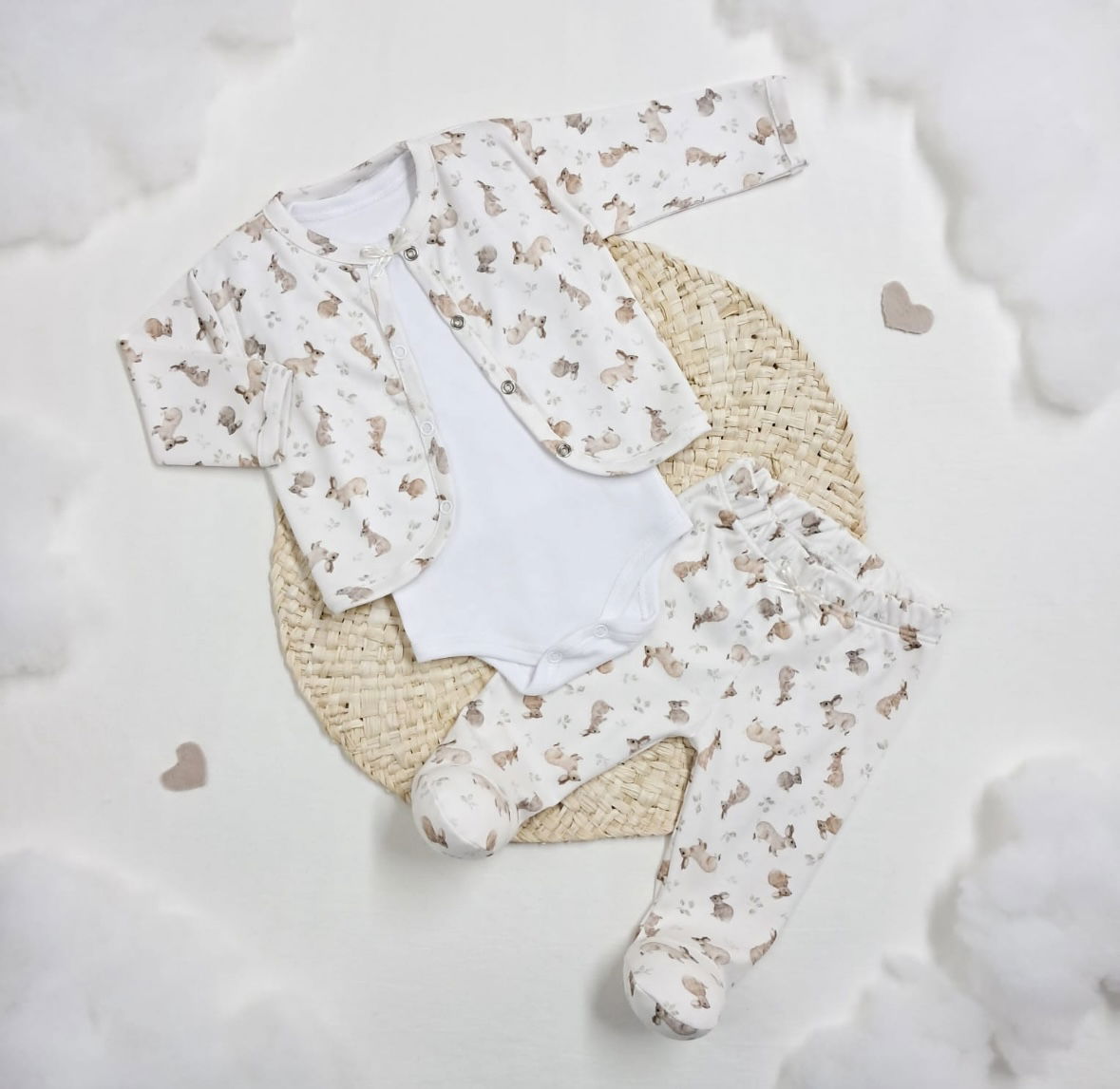 Ajuar 3 piezas saquito conejo beige 🐇