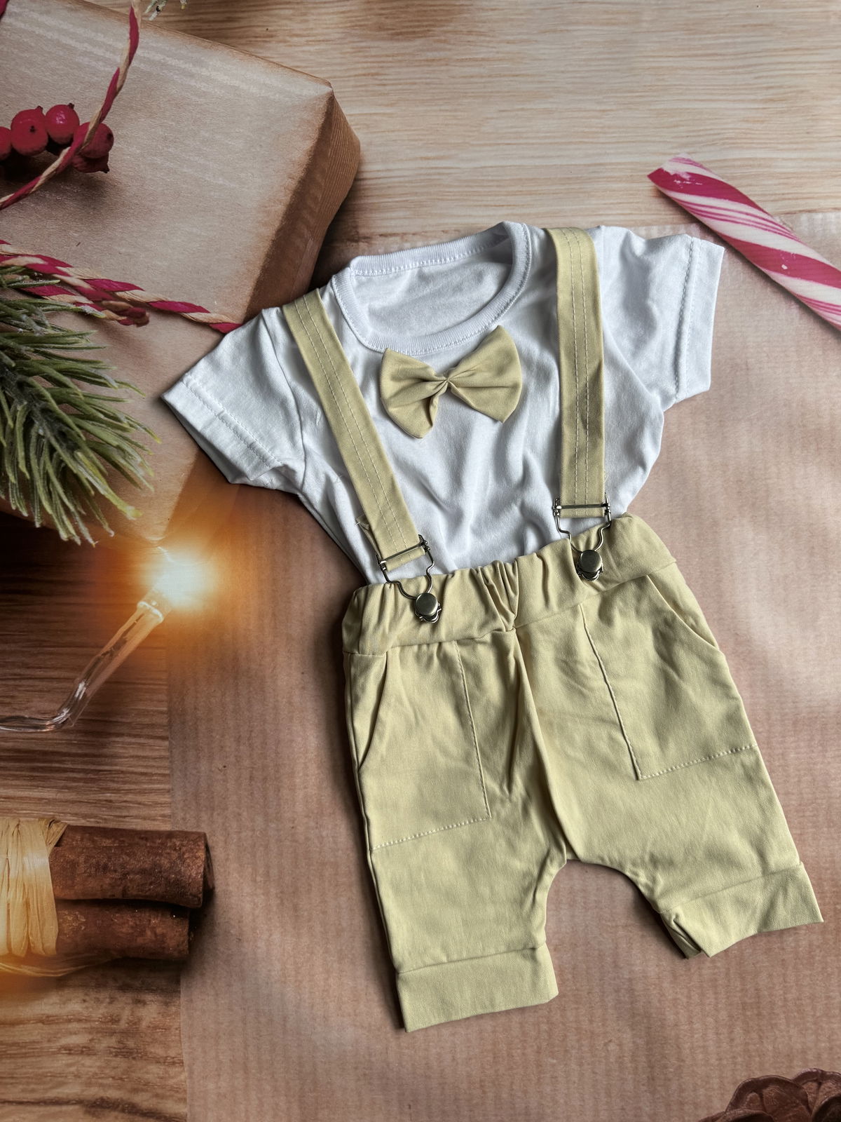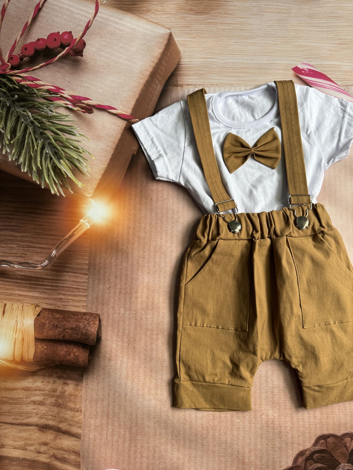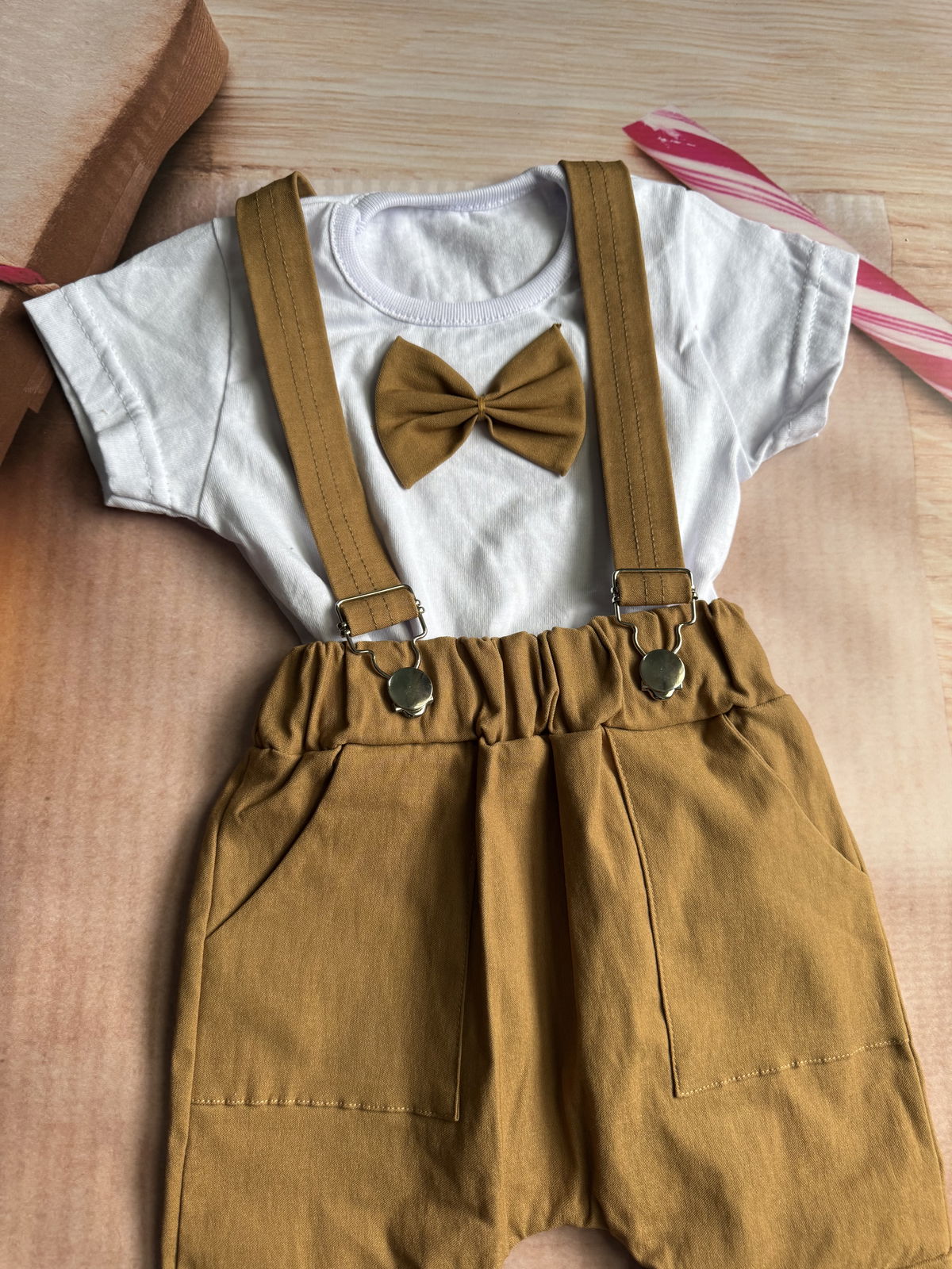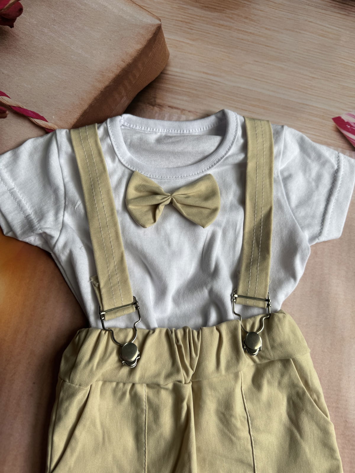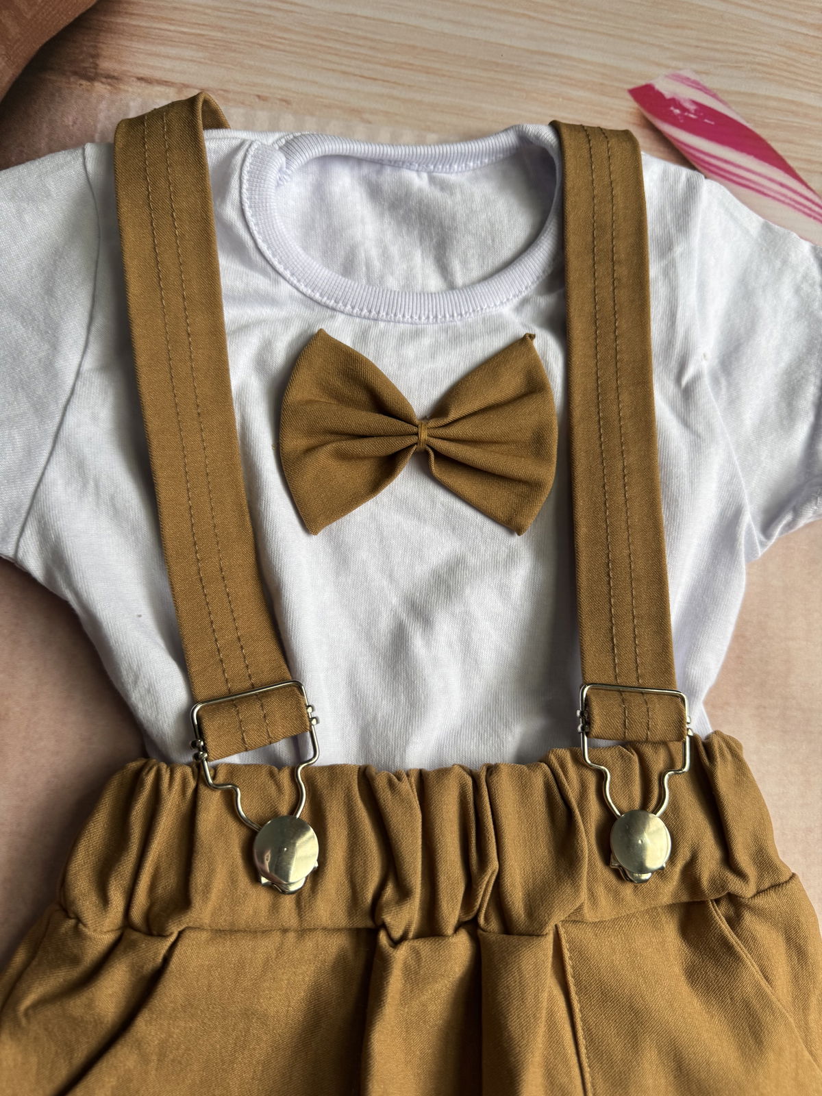 remera con mo帽o y short con tirantes